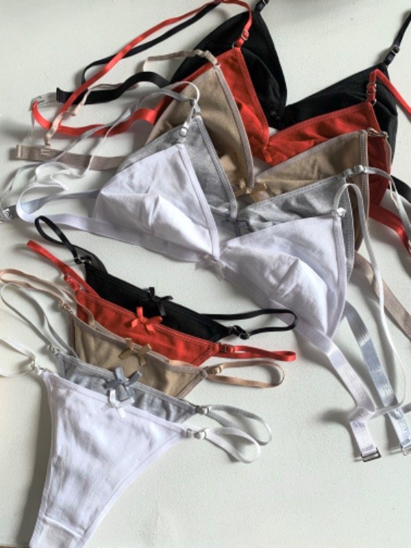 Corpiño triangular con breteles regulables y colaless con breteles regulables