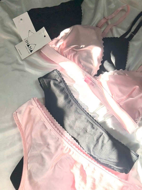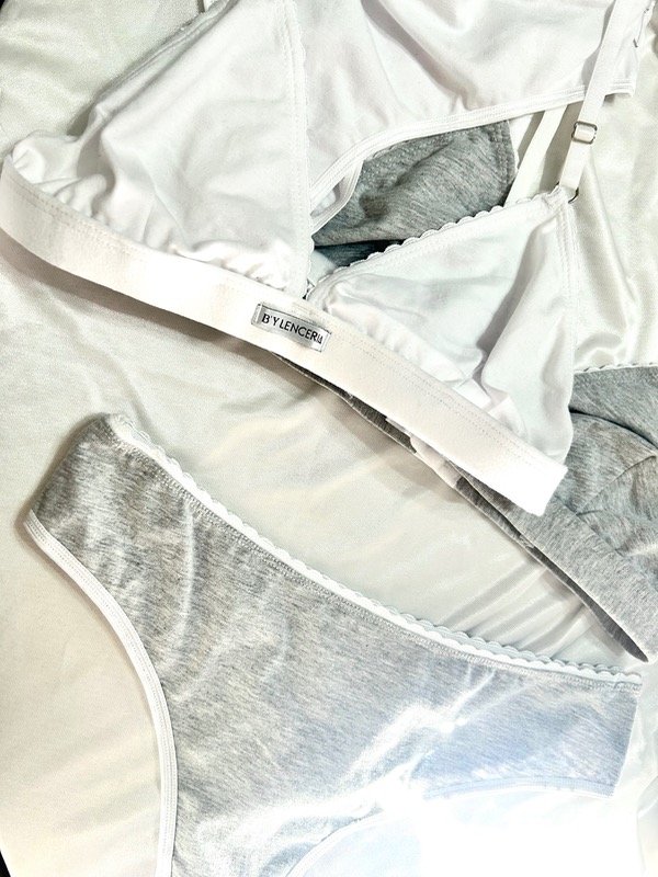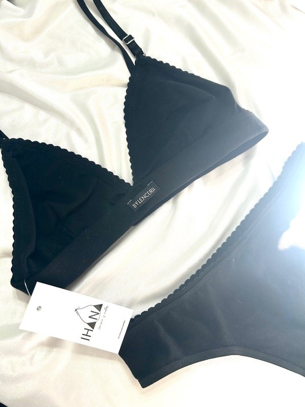 Conjunto de corpiño y bombacha colaless entera de algodón.
