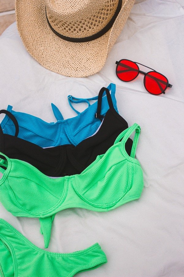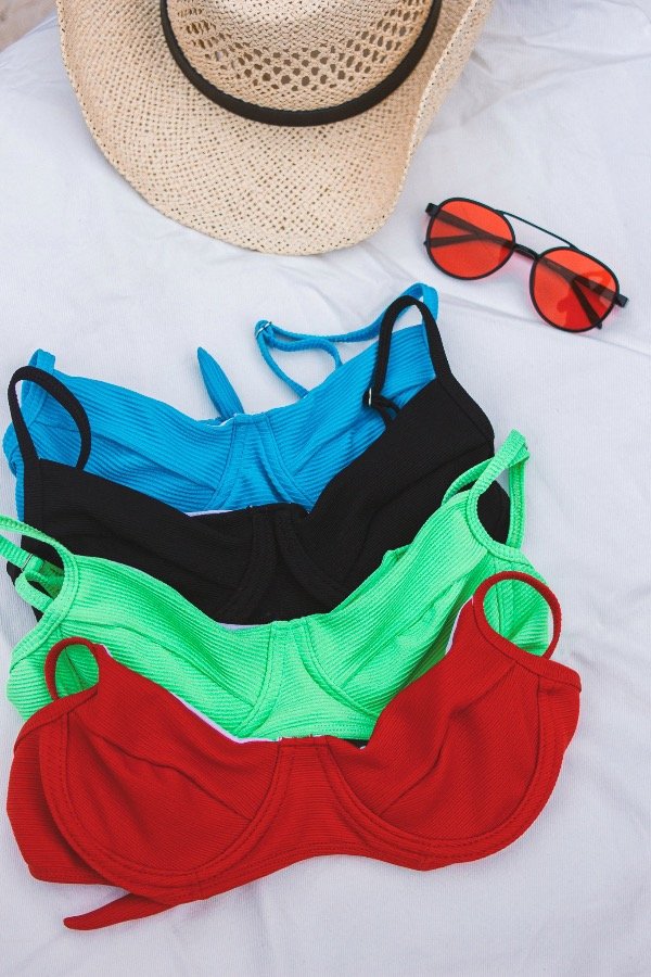 Bikini texturada. Corpiño con aro, breteles regulables en hombros y breteles de atar en espalda.